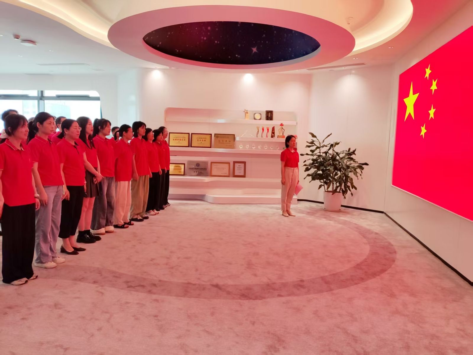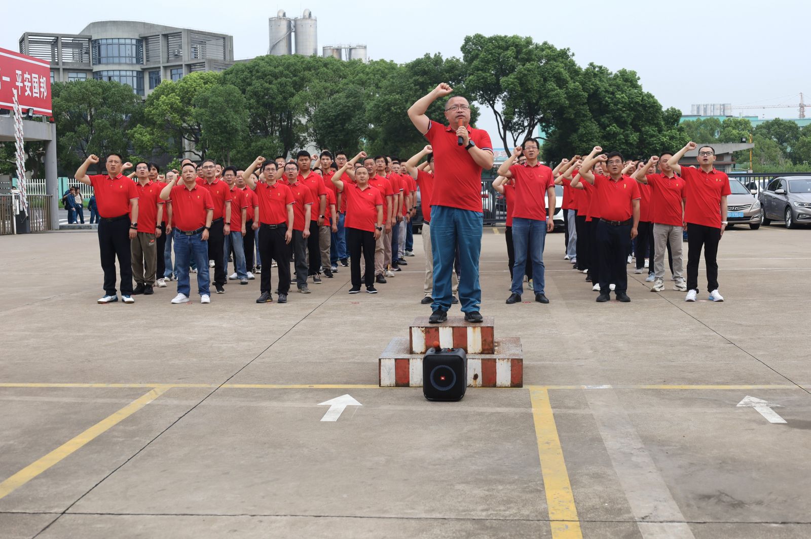 升旗礼毕,全体员工高举右拳,齐声宣誓:“面对挑战毫不畏惧,面对挫折绝不低头,面对失败永不言弃……”钱铿锵誓言回荡在每个园区,员工们目光坚定,展现出昂扬向上的精神风貌。